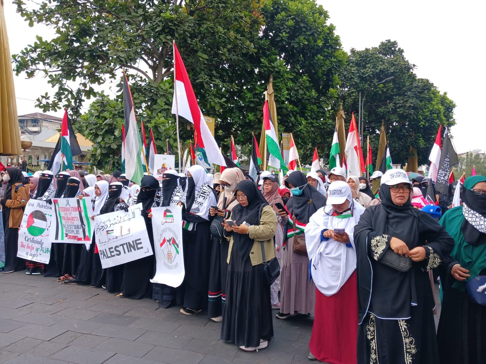 Dalam orasinya, sejumlah aktivis menyampaikan pesan moril berupa dukungan kepada umat Islam di Palestina dalam mempertahankan negaranya.