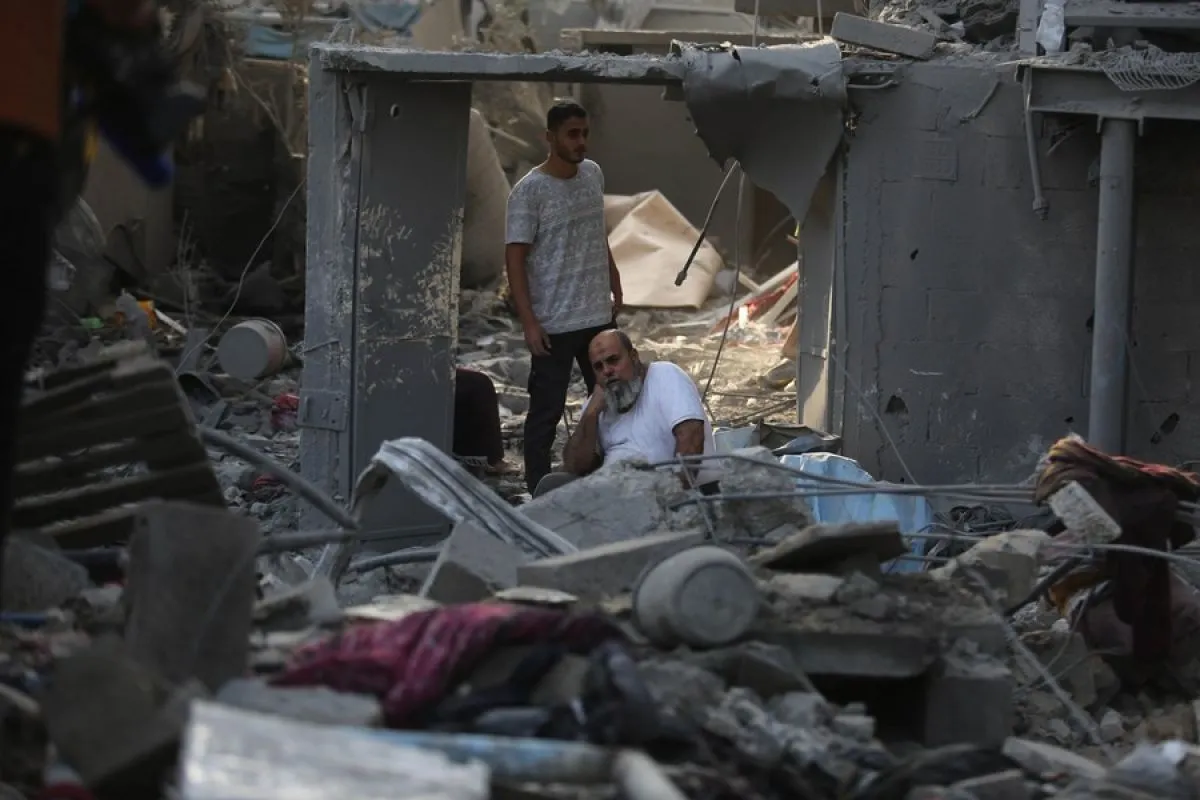 Foto yang diabadikan pada 22 Oktober 2023 ini menunjukkan sejumlah bangunan yang hancur pasca serangan udara Israel di Kota Khan Younis, Jalur Gaza selatan. (Xinhua/Khaled Omar via Antara)
