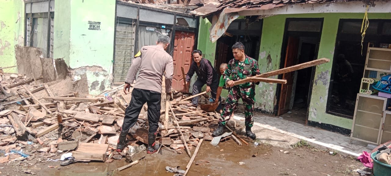 Polsek Tarogong Kidul Polres Garut melalui Bhabinkamtibmas Kel. Sukagalih Aipda Iwan bersama Babinsa dan aparatur Kelurahan melakukan pemantauan ke lokasi rumah roboh yang menimpa salah satu warga Desa binaannya.