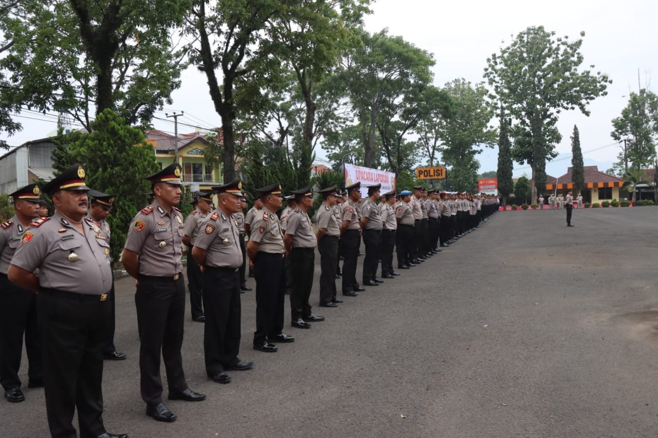 “Pertama – tama marilah kita panjatkan puji syukur kehadirat Allah SWT Tuhan yang maha kuasa karena atas limpahan rahmat dan karunia NYA, sehingga pada hari ini kita semua dapat hadir mengikuti upacara kenaikan pangkat Polri periode O1 Januari 2024 bagi para perwira dan brigadir Polres Garut, dalam keadaan sehat walafiat.” Kata Yonky.