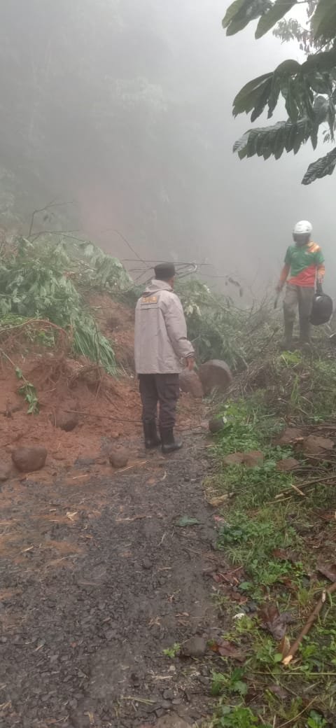 LOCUSONLINE.CO – Polsek Talegong Polres Garut melakukan patroli mitigasi bencana ke lokasi kejadian tanah longsor di Jl. Kabupaten Lama (jalan alternatif) yang tepatnya berada di Kampung Patok Beusi Desa Sukalaksana Kecamatan Talegong Kabupaten Garut. Jum’at pagi (19/01/2024).