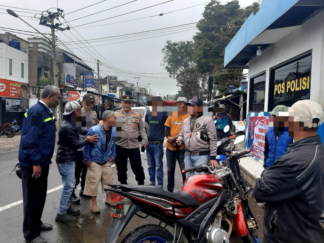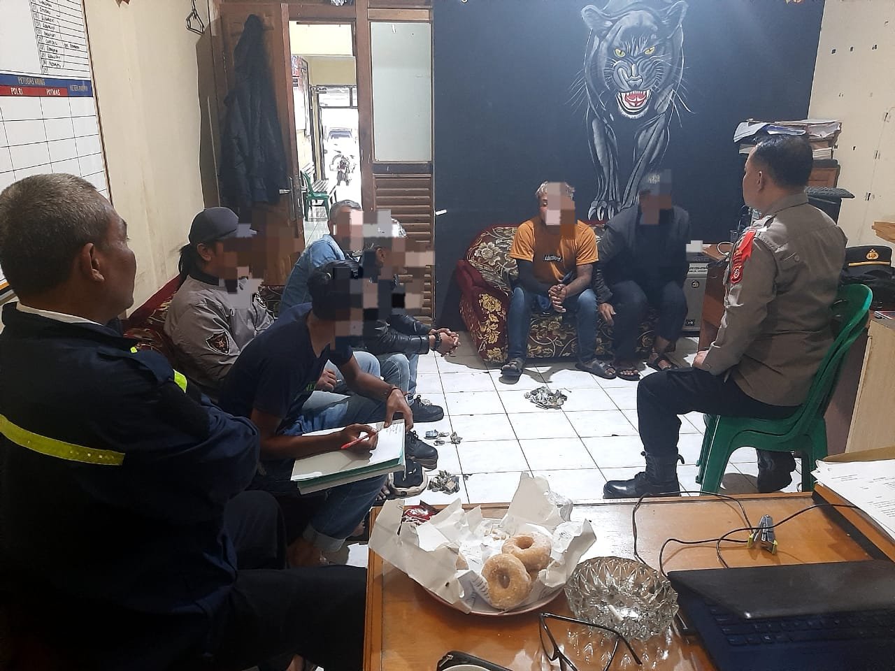 Anggota Polsek Cisurupan mengumpulkan para pelaku parkir liar, pungli dan premanisme serta membawa para pelaku ke Mapolsek Cisurupan.