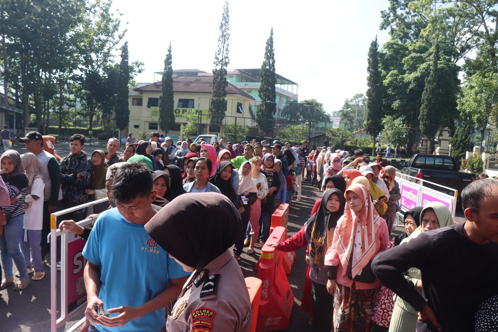Kapolres Garut AKBP Rohman Yonky Dilatha, S.I.K., M.Si., menyebutkan jika Polres Garut menggelar kegiatan Operasi Pasar Murah dengan tujuan untuk membantu meringankan beban masyarakat terkait kenaikan harga bahan pangan yang sedang terjadi saat ini.