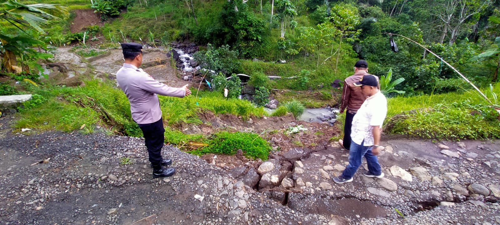 Kapolsek yang datang ke TKP bersama dengan unsur terkait mengatakan, longsor ini mengakibatkan jalan amblas sehingga tidak bisa di lewati Kendaraan Roda 4.