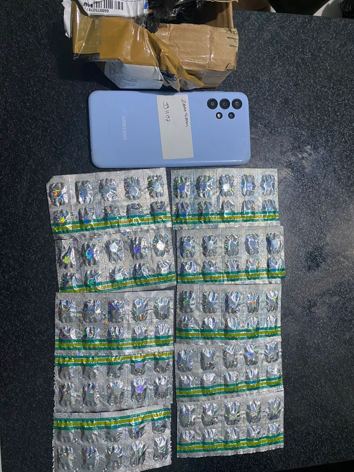 Disaat yang bersamaan dengan di amankannya pelaku, Sat Narkoba Polres Garut juga mengamankan barang bukti berupa 100 (seratus) tablet/butir obat jenis Tramadol Hcl 50 mg yang dibungkus plastik warna hitam dan dimasukan kedalam dus warna coklat, 1 buah handphone dan 1 lembar screenshoot bukti percakapan.