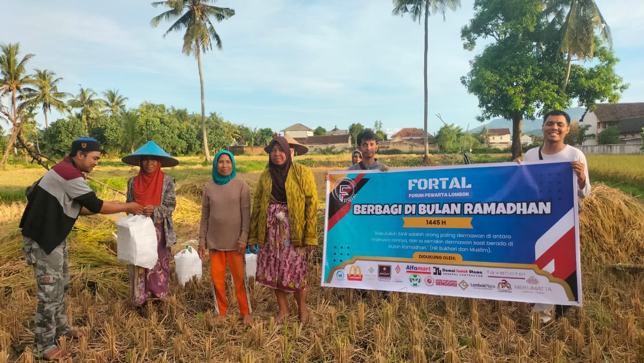 LOCUSONLINE.CO, LOBAR, NTB, – Ditengah lonjakan harga kebutuhan pokok dan beras, Forum Pewarta Lombok (FORTAL) bersama Alfamart Cabang Lombok (PT. Sumber Alfaria Trijaya TBK Lombok) turun tangan membawa keceriaan di bulan Ramadhan. Puluhan Paket berbuka puasa berupa Nasi kotak dibagikan kepada para petani di Lombok Barat (27/3).