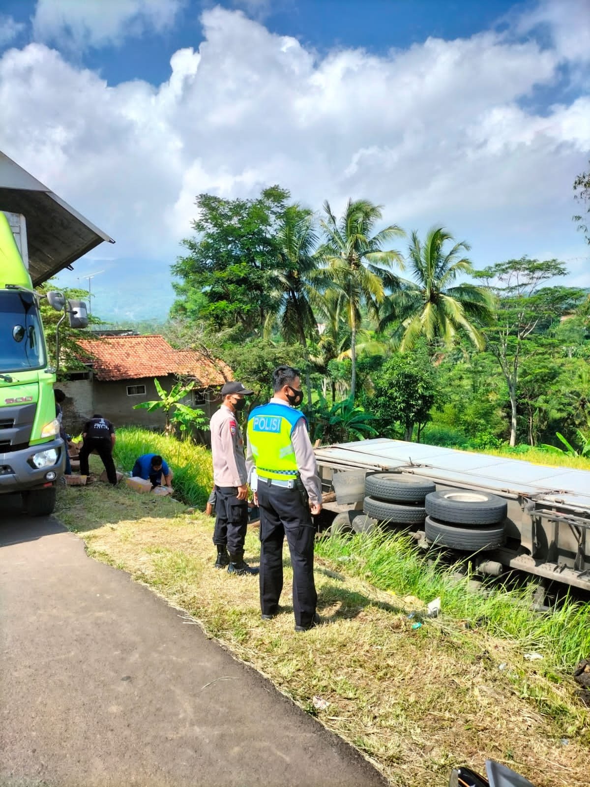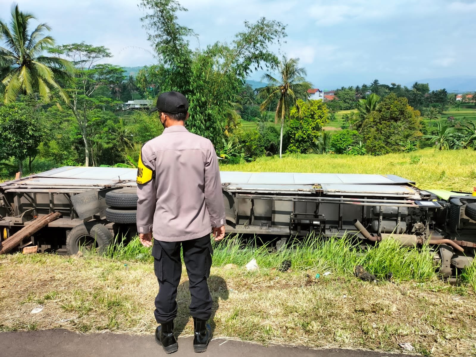 “Benar, telah terjadi kecelakaan lalu lintas dimana sebuah truk terguling kemudian masuk ke dalam parit dan sawah. Kecelakaan ini tidak melibatkan kendaraan lain alias kecelakaan tunggal”, ujar Iwan, Sabtu, 30 Maret 2024.
